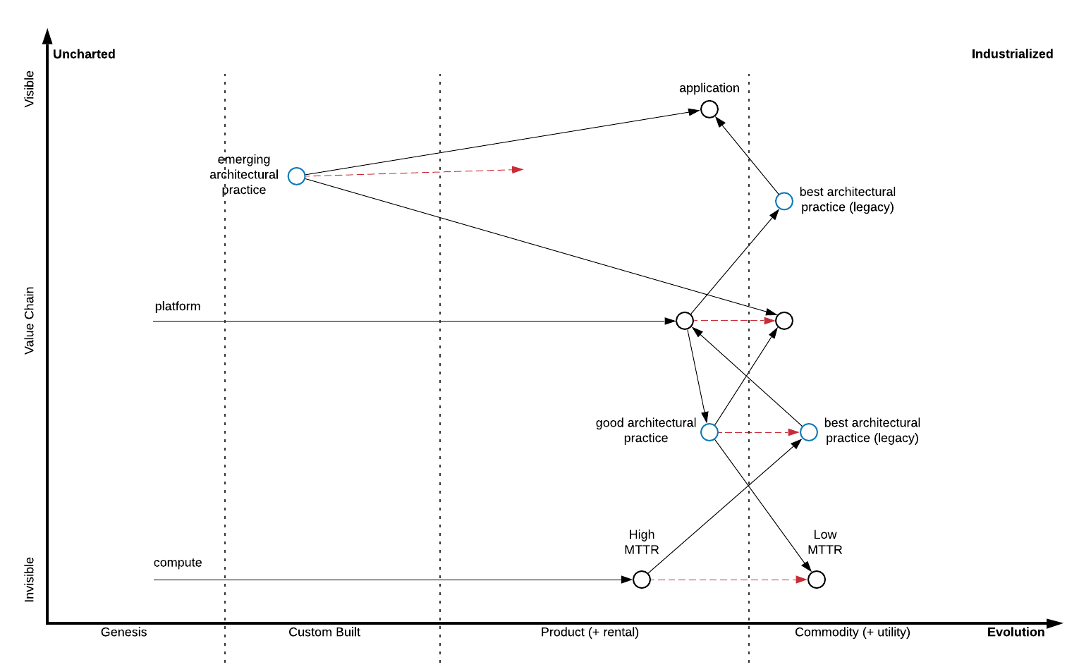 - Evolution: The progression of a component from its earliest stage (genesis) to its most advanced stage (commodity).